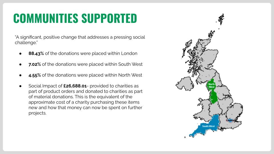 We also calculated the Social Value of the donations, reflecting the savings these organisations achieve by not purchasing new items and enabling funds to be directed towards their services instead.